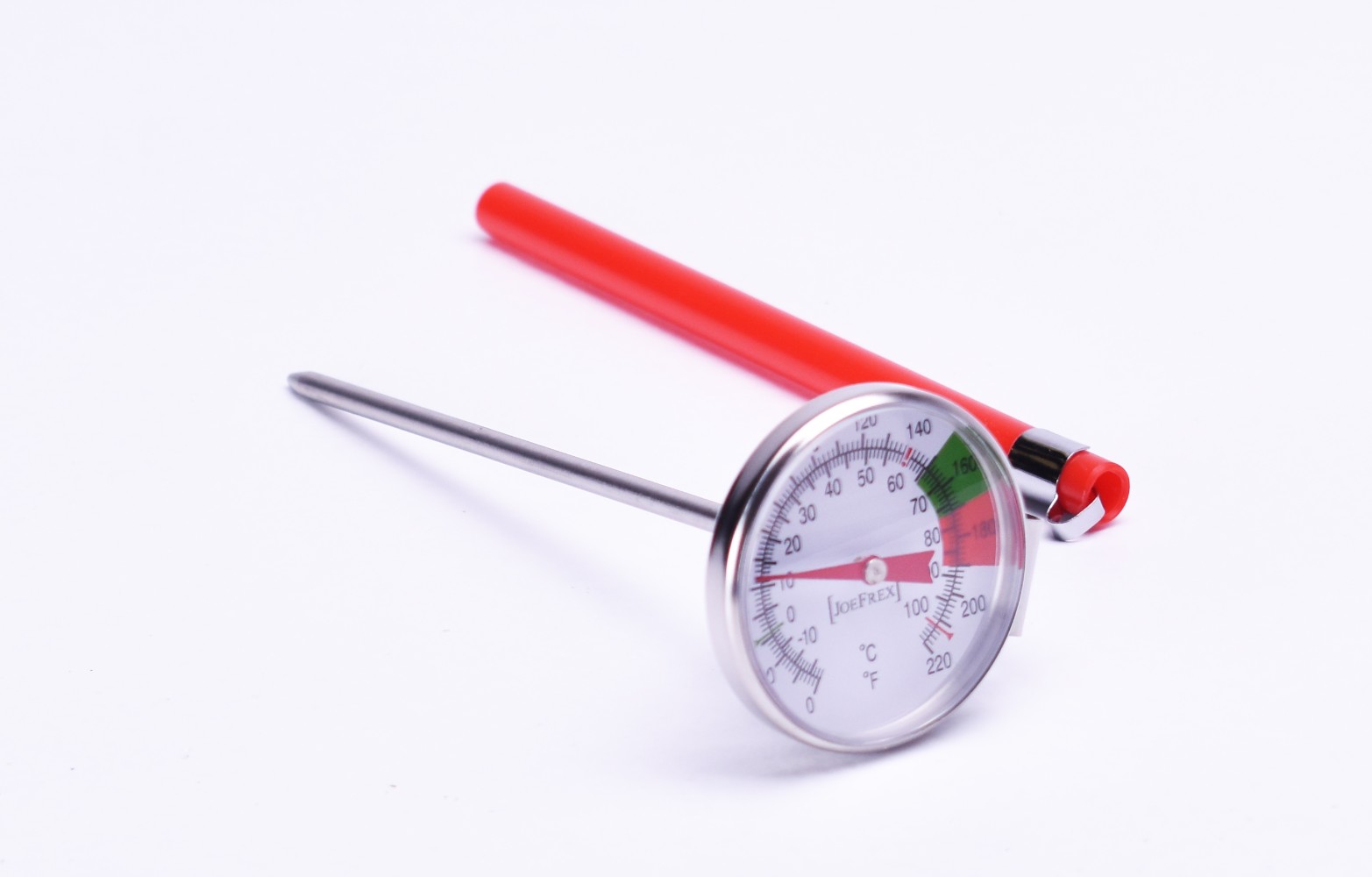 Edelstahl Eintauchthermometer, mit dem Sie präzise verfolgen können, bei welcher Temperatur sich die Milch befindet und wann sie zu heiß wird. Sehr hilfreich beim Aufschäumen.
