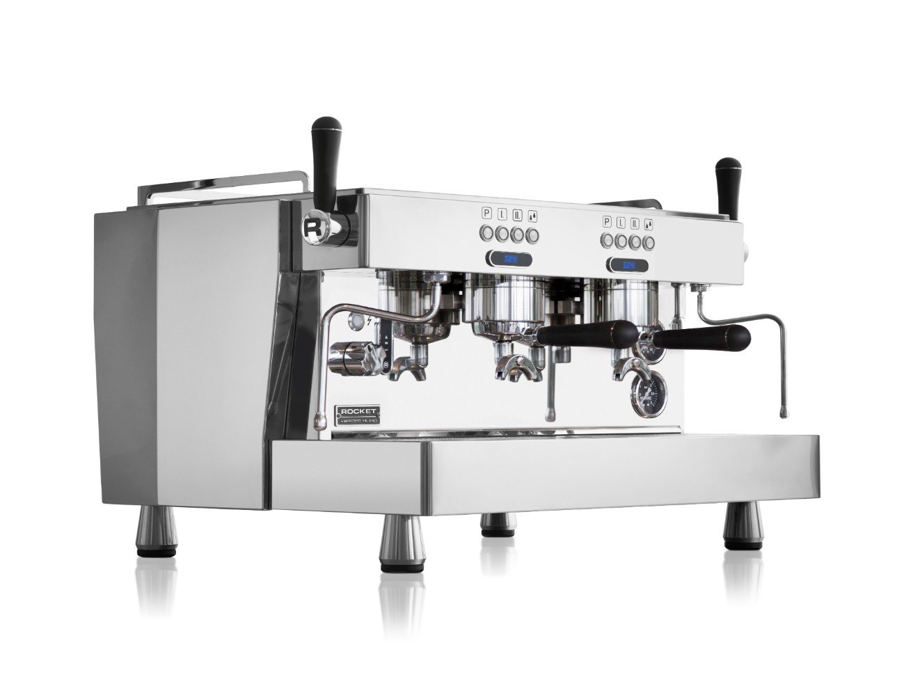 Elektronische Ausführung mit volumetrischer Dosierung der Kaffeemengen, direkt über das Bedienfeld programmierbar. Manueller Schalter zur halbautomatischen Abgabe. Erhältlich in den Ausführungen mit 1 bis 3 Gruppen.