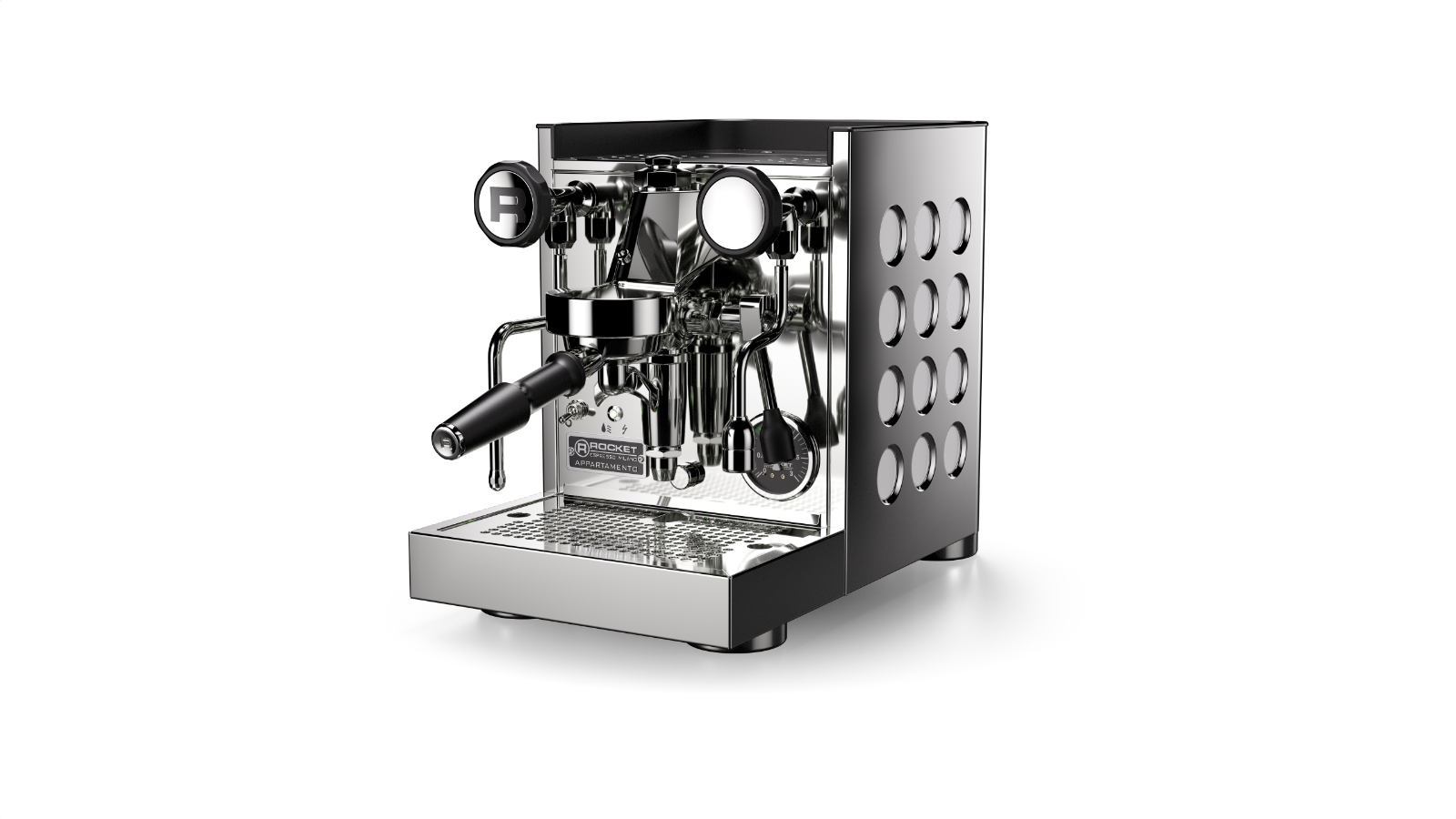 — Schwere Brühgruppe aus Messing (>3 kg) und PID-geregeltes Heizsystem (200 W) für eine stabile und gleichbleibende Brühtemperatur.