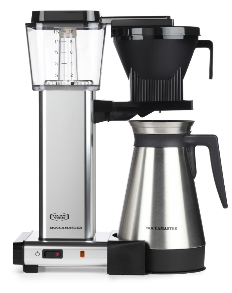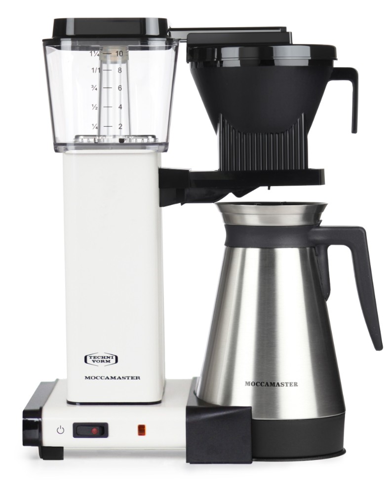 Die Moccamaster Thermoking 3000 ist ideal für Restaurants, Büros und Cafés. Die Thermoking 3000 brüht 3 Liter Kaffee innerhalb von 7.5 Minuten; das entspricht 24 Tassen Kaffee. Die Stunden Kapazität beträgt 115 Tassen Kaffee.Um den Brühvorgang zu starten muss die Thermoskanne korrekt unter den Filterbehälter platziert werden. Ein separates Licht neben dem Schalter gibt an, dass der Brühvorgang gestartet ist