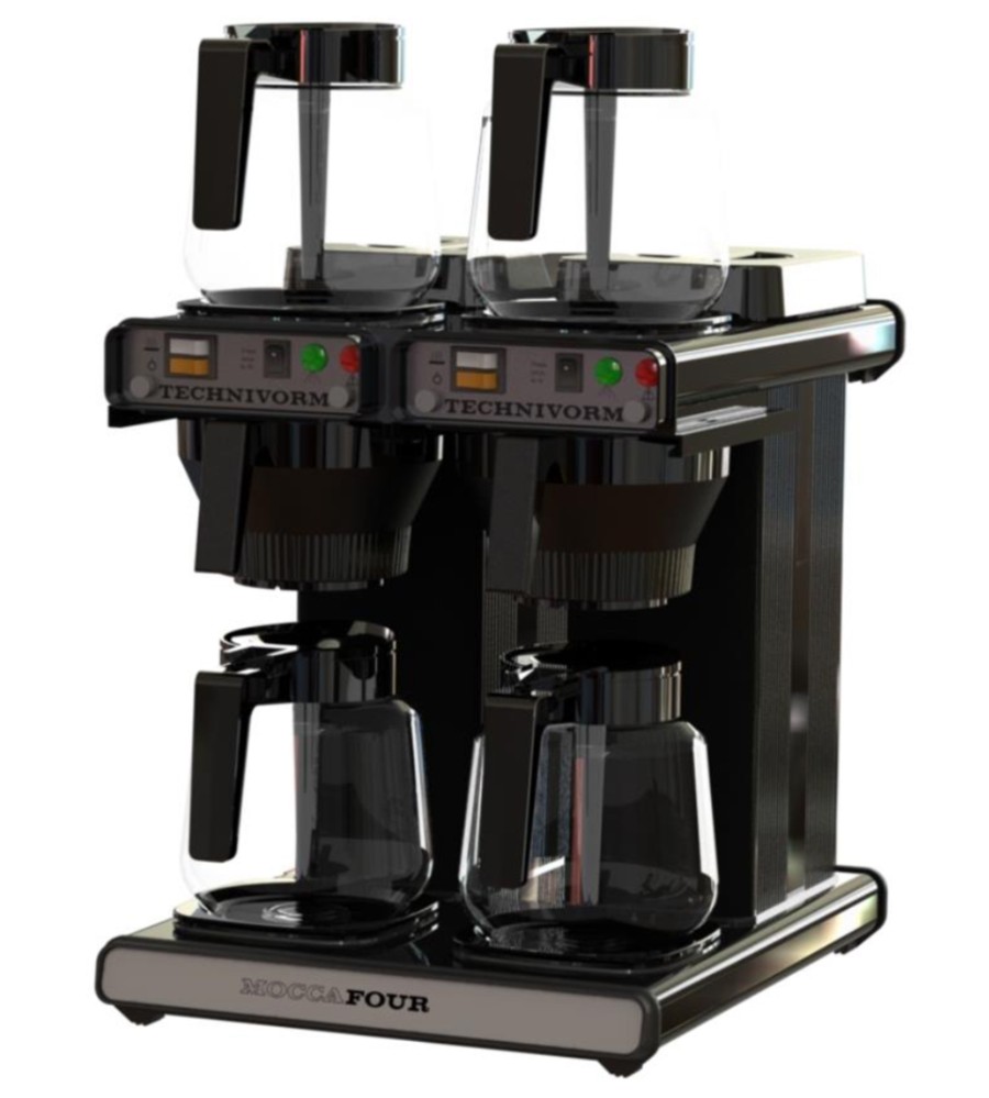 *AutofillDie Moccamaster Moccafour ist ideal für Restaurants, Büros und Cafés. Die Moccafour brüht 4x 1,8 Liter Kaffee innerhalb von 7 Minuten; das entspricht 56 Tassen Kaffee.Der Kaffee wird dann auf der einzigartigen Warmhalteplatte aufbewahrt, die den Kaffee heiß hält und für einen gleichmäßigen Geschmack von der ersten Tasse bis zum letzten Tropfen sorgt. Die Maschine ist für zusätzlichen Komfort mit automatischer Befüllung erhältlich. Die Kapazität beträgt ungefähr 75 Tassen (21 l) pro Stunde.