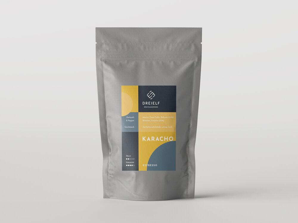 Eine vorzügliche Mischung aus 75% Arabica und 25% Robustabohnen aus Mittelamerika und Indien. Der klassische Espressokaffee.